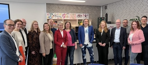Begleitet wurde sie von einer Delegation bestehend aus dem Präsidenten der Handwerkskammer, Berthold Schröder, WHKT-Hauptgeschäftsführer Dr. Florian Hartmann, Diana Post Dienstaufsicht BRA, einer Vertreterin vom Fachbereich Schule sowie Schulrat Holger Nolte.