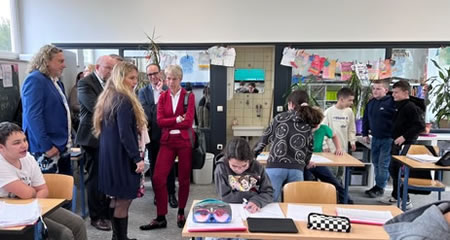 Die NRW Schul-und Bildungsministerin Dorothee Feller besuchte im Rahmen ihrer Praxistour „Schulen vor Ort kennenzulernen“ die Hauptschule Dortmund Scharnhorst.